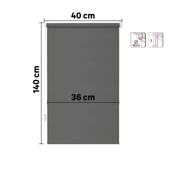 Roller blind blackout pluton moon 40/36x140cm