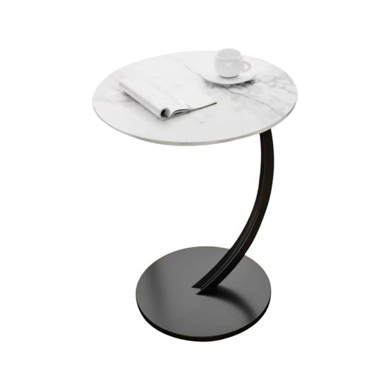 Round C Shaped Wooden Side Table - WHITE & BLACK