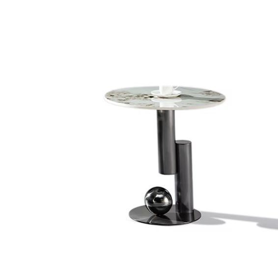 Round Minimalist Side End Table Pedestal Slate Sofa Corner Table