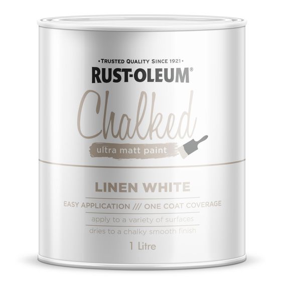 Transform your furniture with ease using this Rust-Oleum Chalked Ultra Matt Paint in Linen White. This 1L can of paint is perfect for giving your old furniture a fresh new look with a trendy chalked finish.