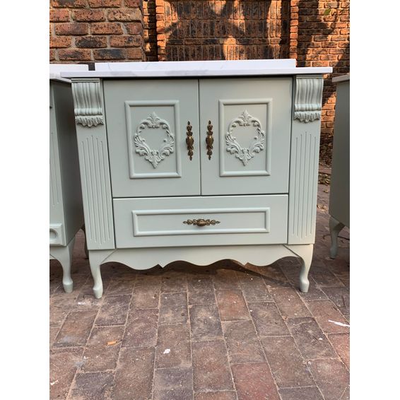 Sage green 900mm/800mm vanity with korbels & embellishments