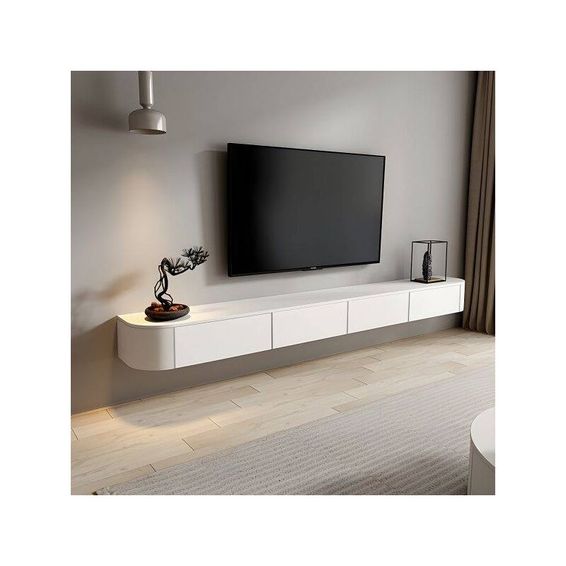 Designed with a simple sleek line, this floating entertainment center brings a luxury touch to your space. with the floating design, it is easy to clean the spot under the stand. constructed from an mdf frame, this solid wood floating tv stand with drawers ensures sturdy construction and everlasting beauty. accommodates a flat-screen tv up to 80″w. easy to mount on the wall and makes cleaning easy. it provides plenty of space for storing all of your media accessory necessities, practical and stunning. this tv shelf is joined with heavy-duty stainless steel hangers on the wall and ensures a load-carrying capacity for all your entertainment items. colors available matt black white grey dimensions width: 78.74" depth: 7.87" height: 11.81" warranty 1-year warranty on all manufacturing faults.