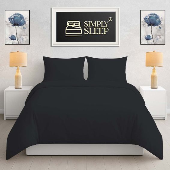Simply Sleep - Everyday Collection Duvet Cover Set - Plain - 90GSM- (1Set) Jet Black - Three Quarter
