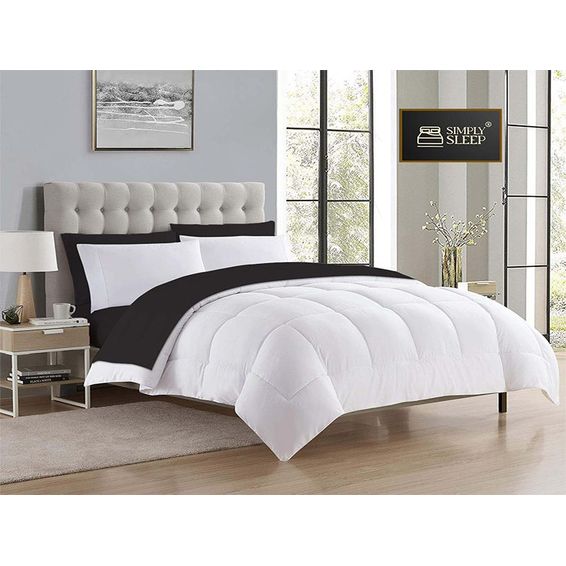Simply Sleep - Reversible Comforter Set - 90 GSM Micro Fibre - Jet Black - Optical White, King - Super King