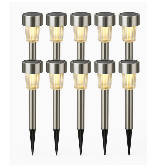 Solar Lawn Light Tubes – Warm White Stainless Steel 12pc Set