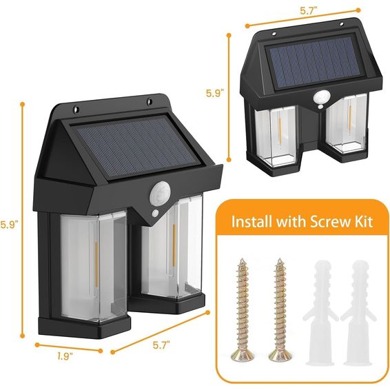 Easy installation and wide range of applications Our Solar Outdoor wall lights are equipped with installation accessories and user manuals, making them easy to install without wiring. Solar wall lights have a simple, modern, stylish, European style and can add a touch of bright color to your home, such as porches, patios, garages, backyards, corridors, balconies, gardens, corridors, etc.