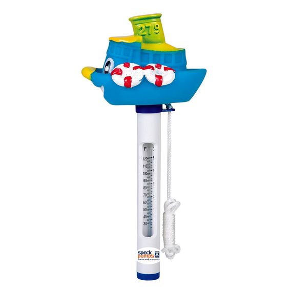Speck Clown Cruise Thermometer Add some fun to your pool with the Pool Thermometer Speck Clown Cruise. This charming clown-shaped thermometer not only decorates your pool but also measures the water temperature accurately. It displays the temperature in both Fahrenheit and Celsius on an easy-to-read scale. Built with a shatter-resistant casing for durability, it is designed to float on the water surface for easy visibility. The Pool Thermometer Speck Clown Cruise also comes with a tether cord for anchoring to the pool wall or ladder, so it's always within reach. Whether you're checking the water temperature for swimming or simply adding a cheerful touch to your pool, the Speck Pool Thermometer Clown Cruise is a fantastic choice.
