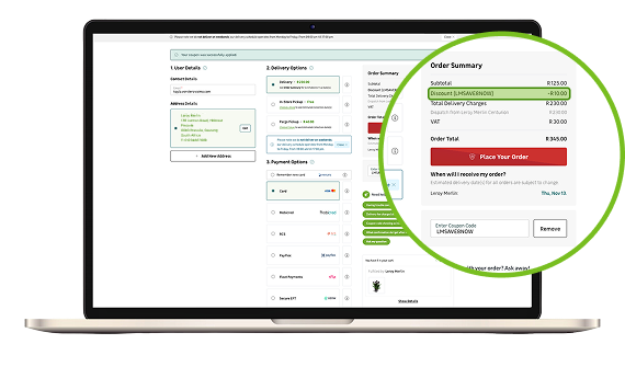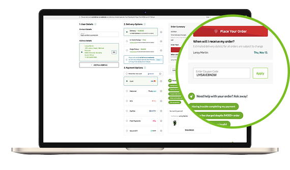 During checkout, you’ll be able to enter your details, choose your delivery and payment options, and apply a coupon code if you have one.