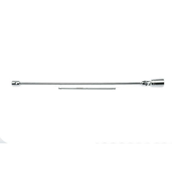520mm long with universal joint 6 point spark plug socket, a T bar handle and 3/8inch drive.