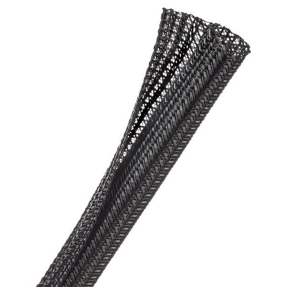 The 10 mil PET braid is lightweight, quiet and flexible. The 25% edge overlap (at nominal diameter) allows coverage around inline plugs, connectors and splices.