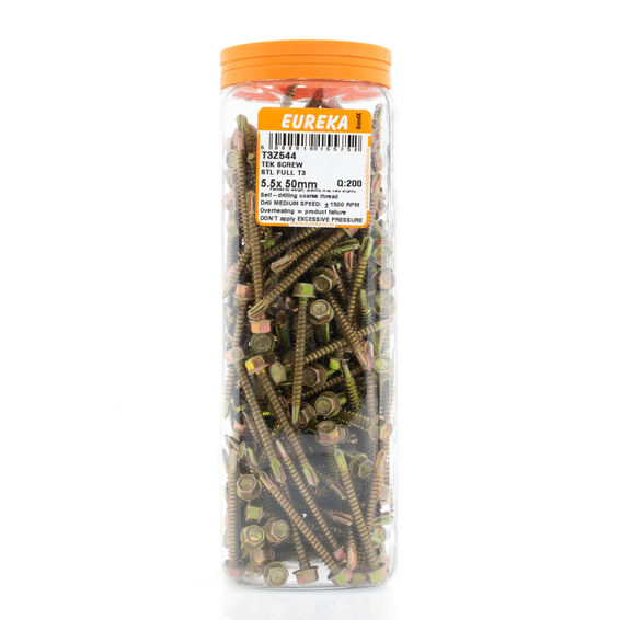 Upgrade your fastening game with the Tek Screw Eureka Steel Full T3. These screws measure 5.5mm in diameter and 50mm in length, perfect for a variety of projects. With a quantity of 200 screws per pack, you'll have plenty to tackle any job that comes your way.