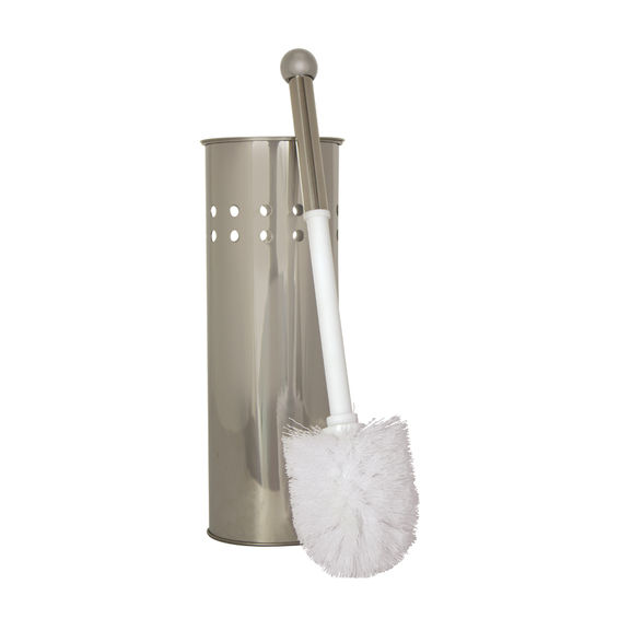 • Deluxe stainless steel finish adds style to any bathroom makeover • Plastic bristled brush ensures effortless cleaning and rinsing • Sturdy design prevents tipping over