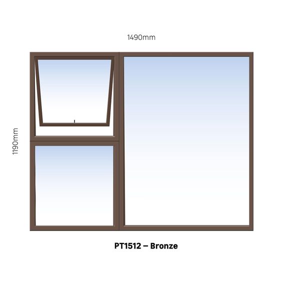 TOP HUNG ALUMINIUM WINDOW BRONZE PT1512 1 VENT W1500MM x H1200MM