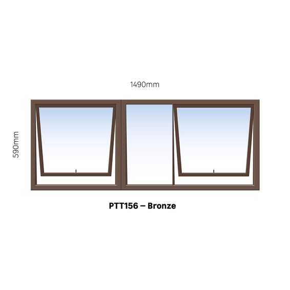 TOP HUNG ALUMINIUM WINDOW BRONZE PTT156 2 VENT W1500MM x H600MM
