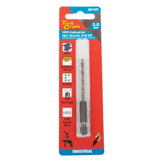 Tork Craft - Drill Bit Hss Industrial 3.0mm 135Deg Hex Shank - 24 Pack