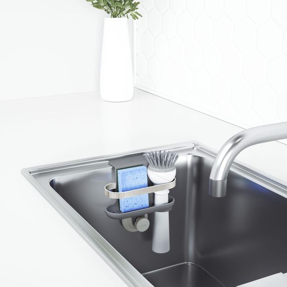 Upgrade your kitchen sink with the Umbra Holster Sure Lock Sponge Caddy. This innovative caddy features Umbra's Sure-Lock technology, securely sealing and locking it to the wall of your sink. The built-in ledge provides added stability and grip, keeping your sponges and scrubbers organized and within reach.