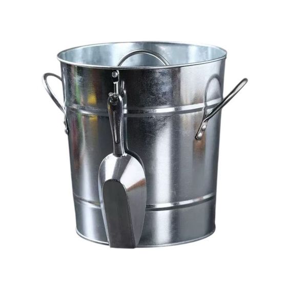 Vintage-Style Metal Ice Bucket with Scoop-Silver