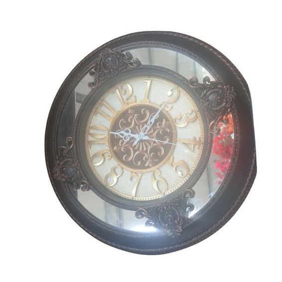 Vintage Wall Clock with Ornate Frame, Round Decorative Clock Face, Large Antique Style, Dark Bronze