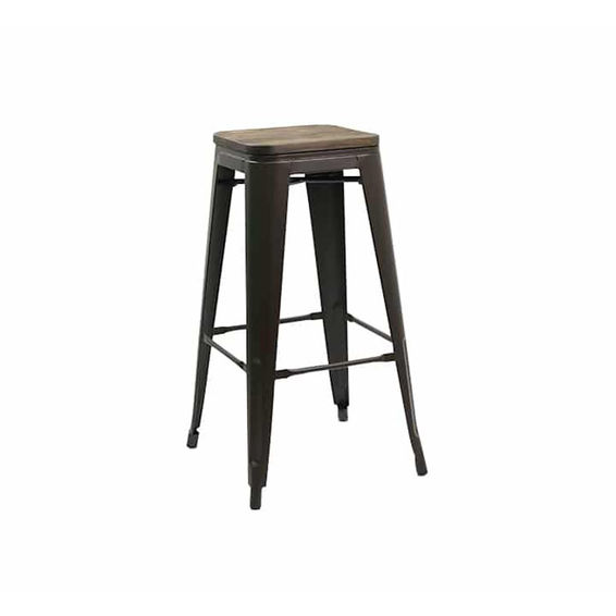 Vividitto - Tolix Bar Chair With Wooden Seat - Matte Brown
