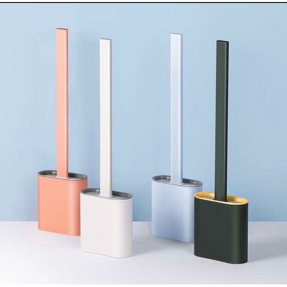 Wall Mountable Silicone Toilet Brush with Holder - 2PCS