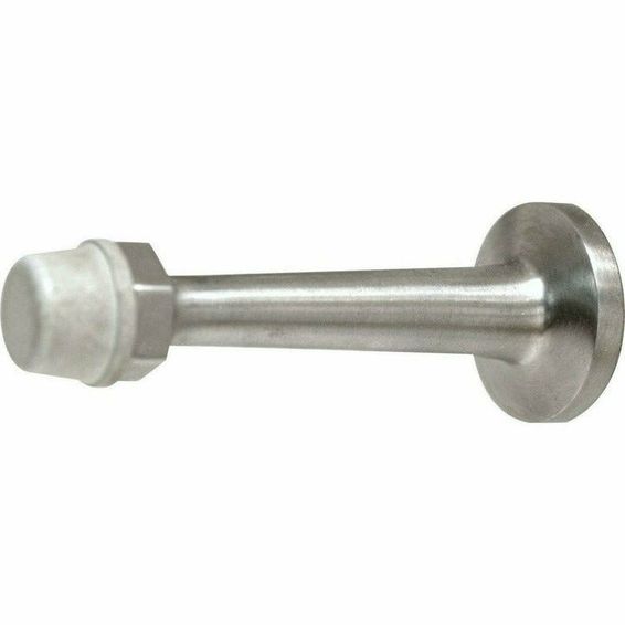 - Wall mounted door stop made of solid brass material and available in brass or satin chrome finish.