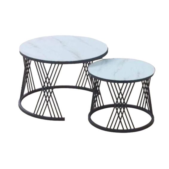 Madiega Furniture - White Marble Top with Black Crisscross Base Coffee Table Set