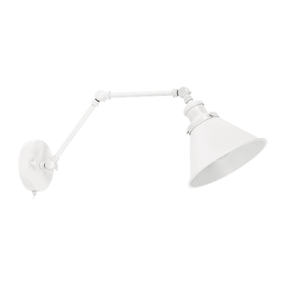 Zebbies Lighting Parker White Wall Light with Adjustable Arm and On/Off Switch