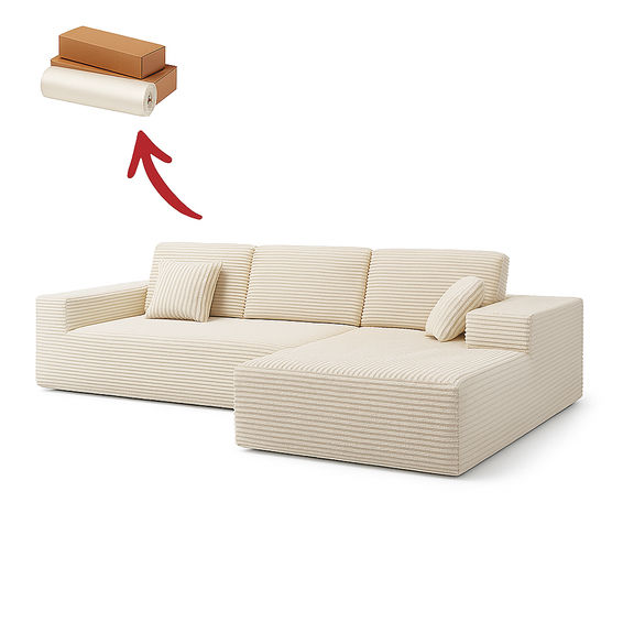 Ziyane Corduroy Boneless Couch, L-Shaped Sectional Sofa